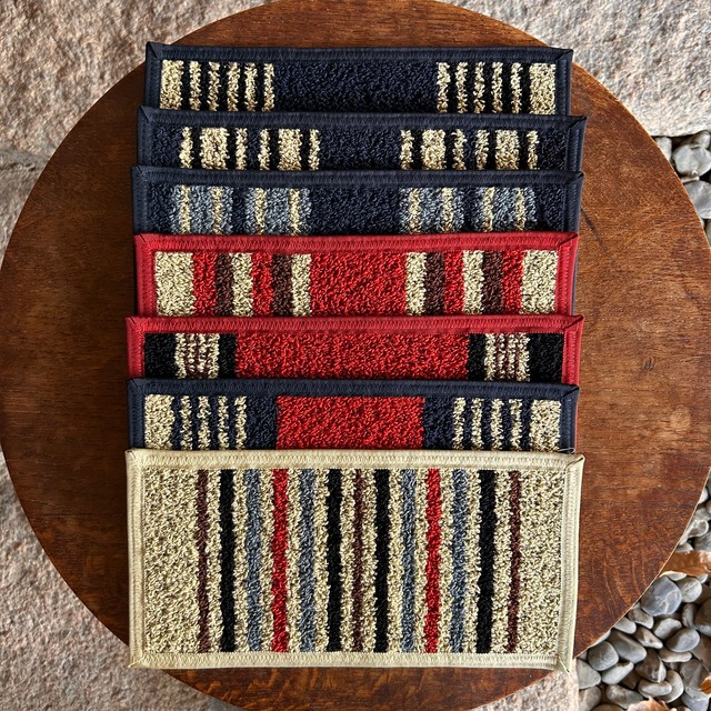 芹沢銈介デザインの倉敷緞通です(岡山県倉敷市)。 倉敷緞通は以前より、金波織と呼ばれ作られていました。柳宗悦たちの目にとまり、芹沢銈介にデザインを依頼し「倉敷緞通」が出来ました。 作り手は瀧山雄一さんで、岡山県倉敷市内にてお一人で制作されています。 表面はレーヨンの混合糸でリング状に紡いだ糸が使われています。裏面は紙がまかれた井草で、通気性があってさらりとした手触りです。玄関やお部屋の棚に花瓶やカレンダーの敷物としてご利用になってはいかがでしょうか。 〈サイズ〉 テーブルランナー 約15×30㎝ デザインは7種、No.を選択してください。