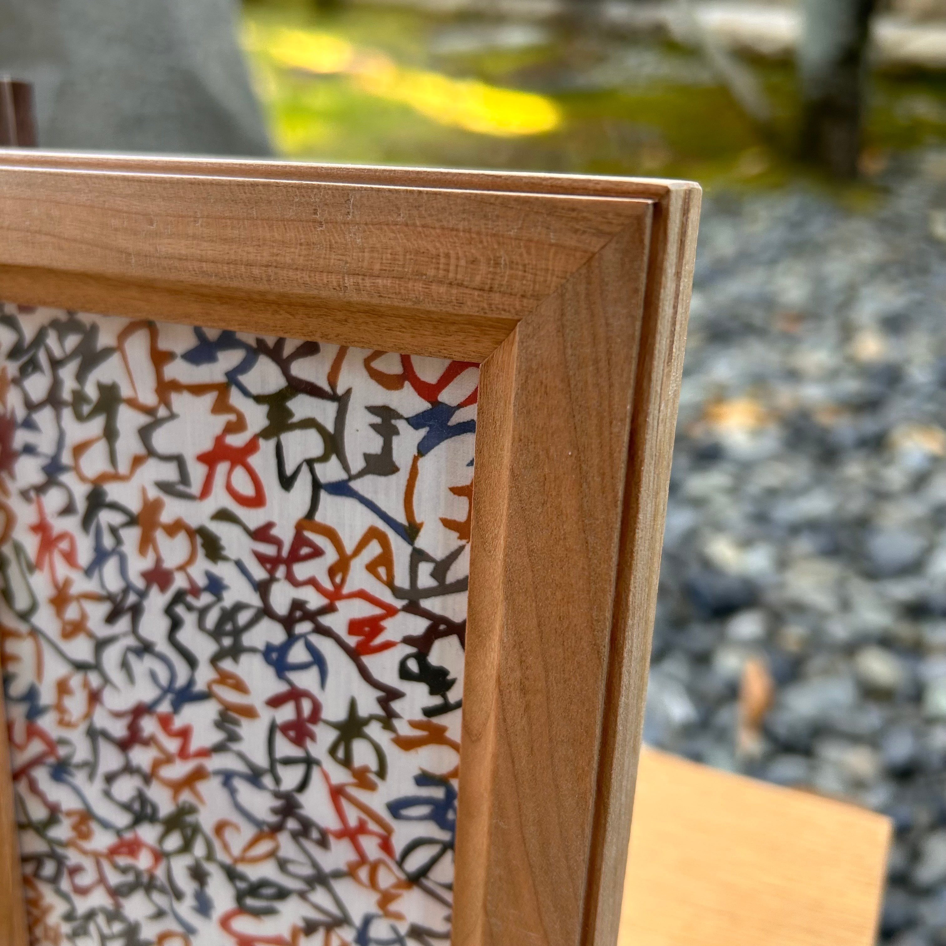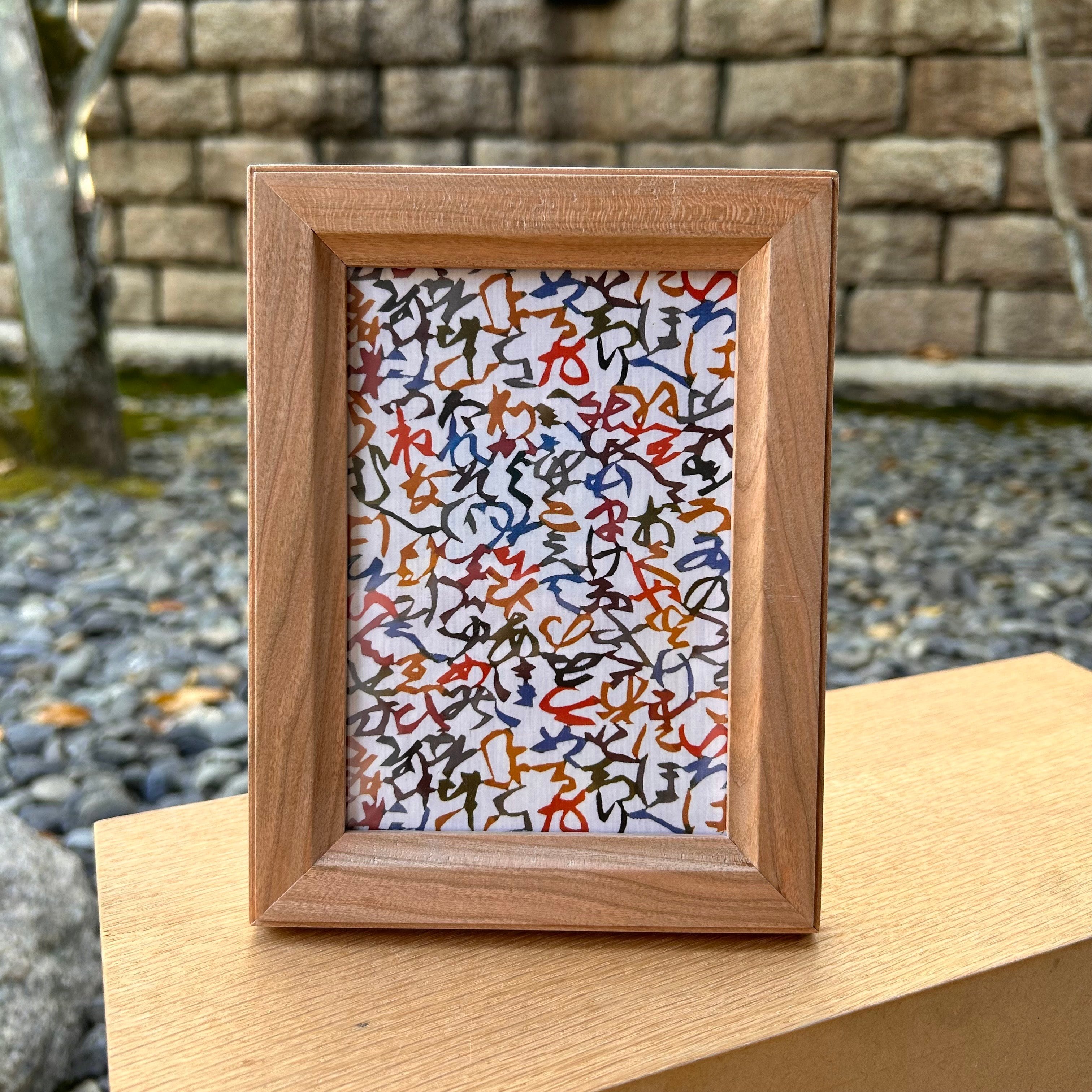 ナチュラルな風合いが印象的な額の素材は桜の木で、時が経つほどに色の移り変わりが楽しめます。