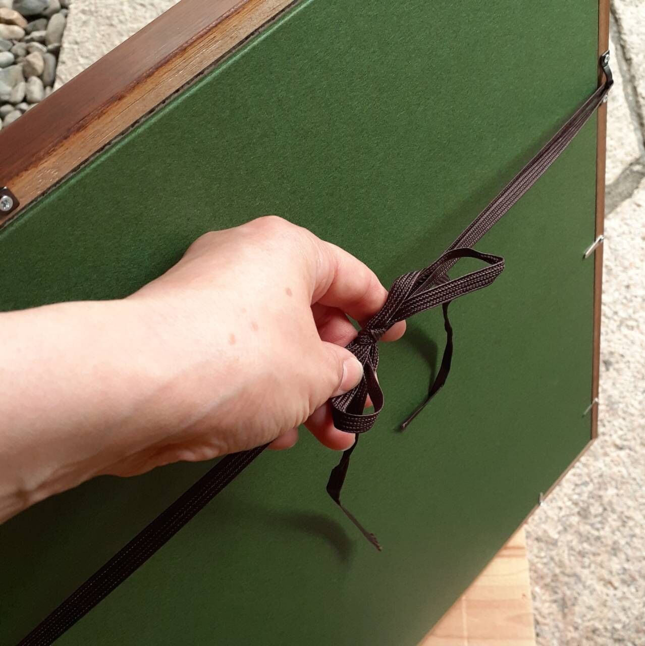 表面はアクリル板で、裏側には壁に掛けられるよう紐がついています。