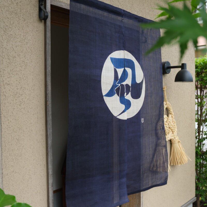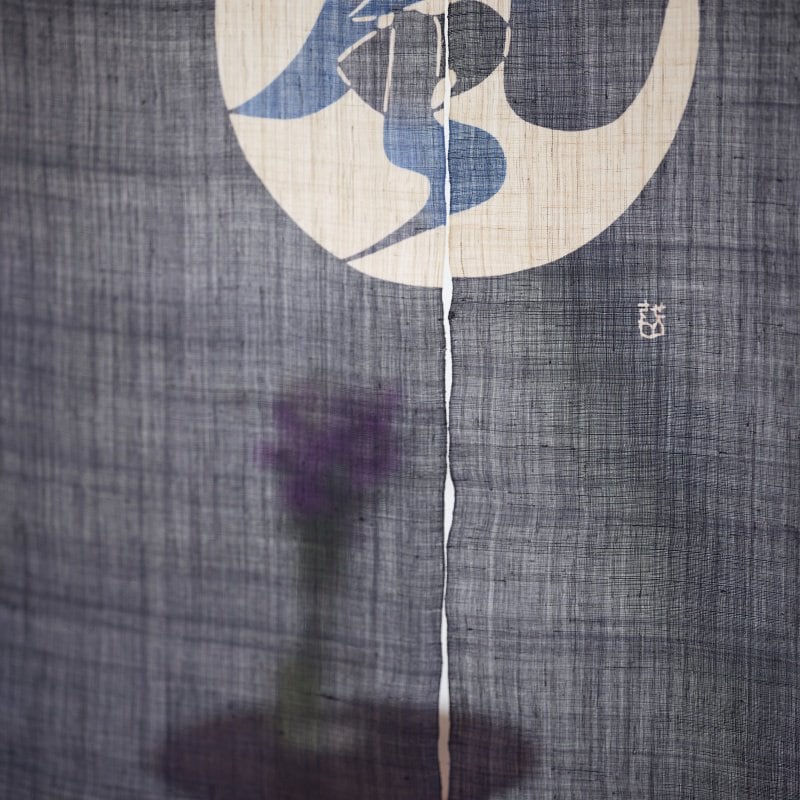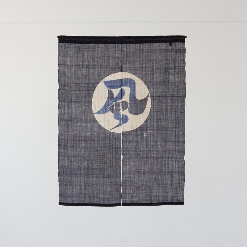 芹沢銈介の代表作である「風」の字をモチーフとした、透け感のある、とても涼しげなのれんです。