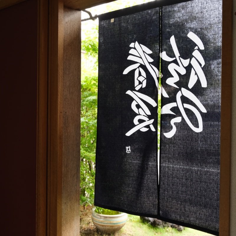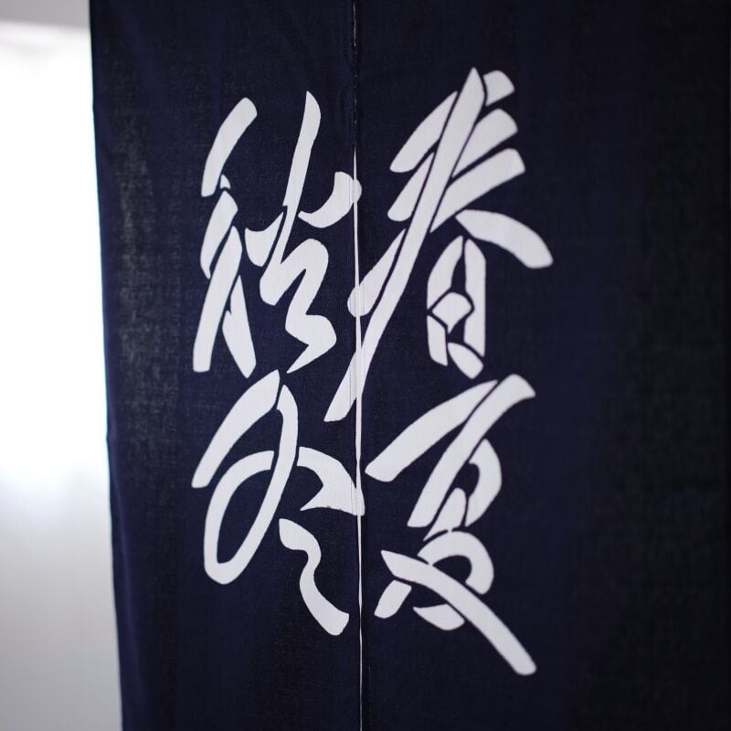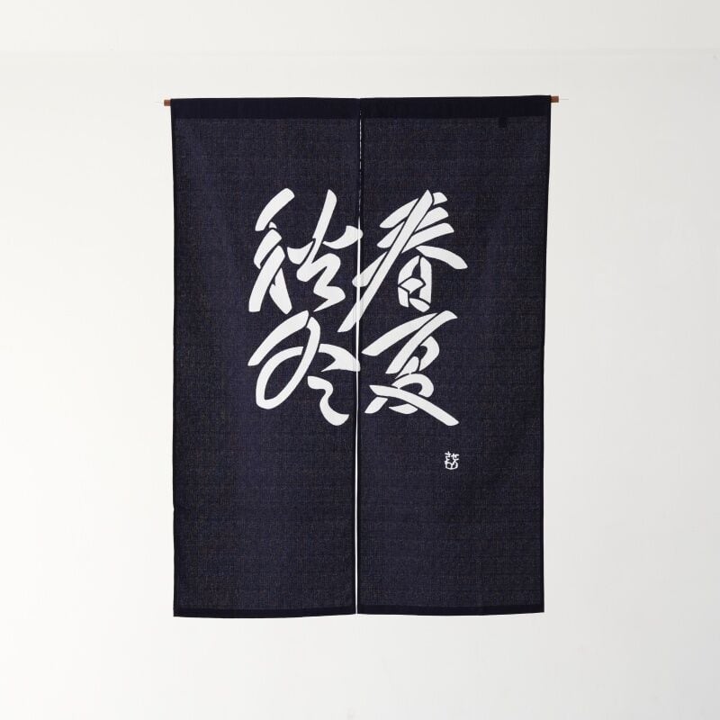 春夏秋冬の文字を染めたのれんです。