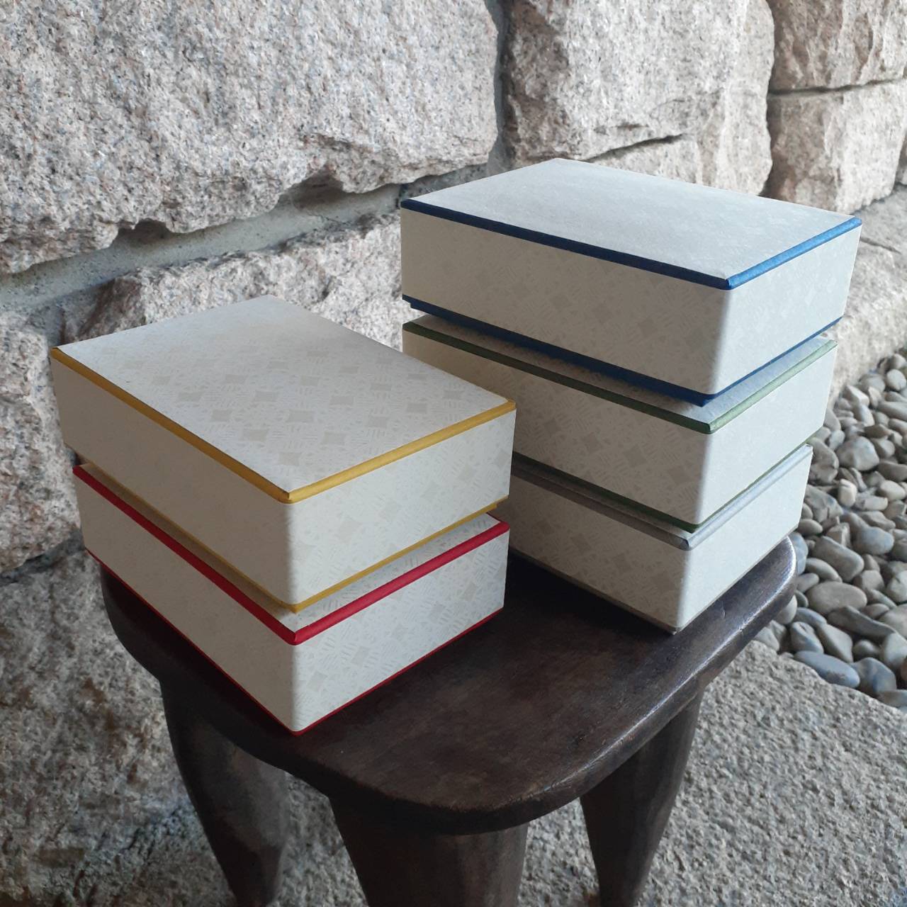 museumshopで人気のはがき箱に、白色の手まり模様が登場です!