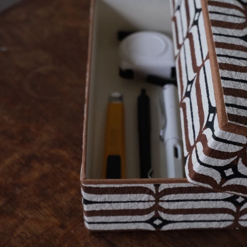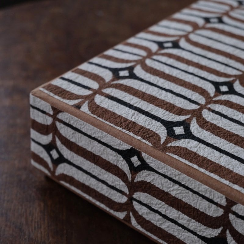 芹沢銈介美術館museumshopオリジナル・茶色のアイヌ柄の文庫箱です。
