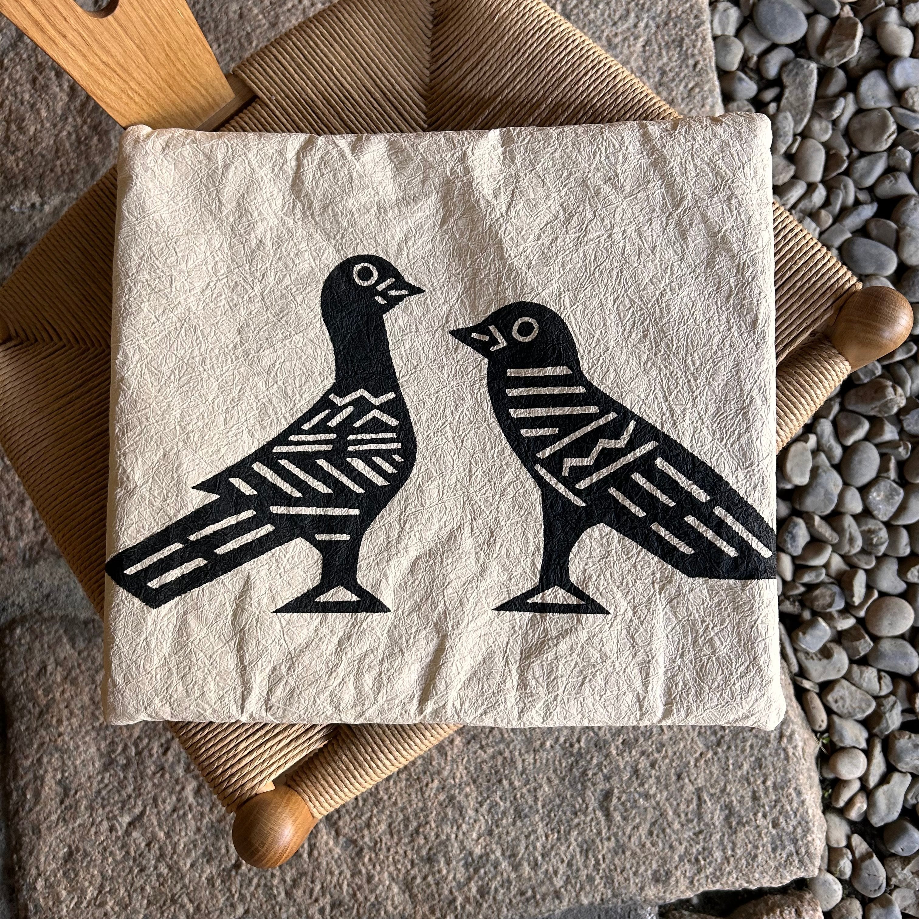 桂樹舎・八尾和紙で作られた黒色のバード柄の角座 です。