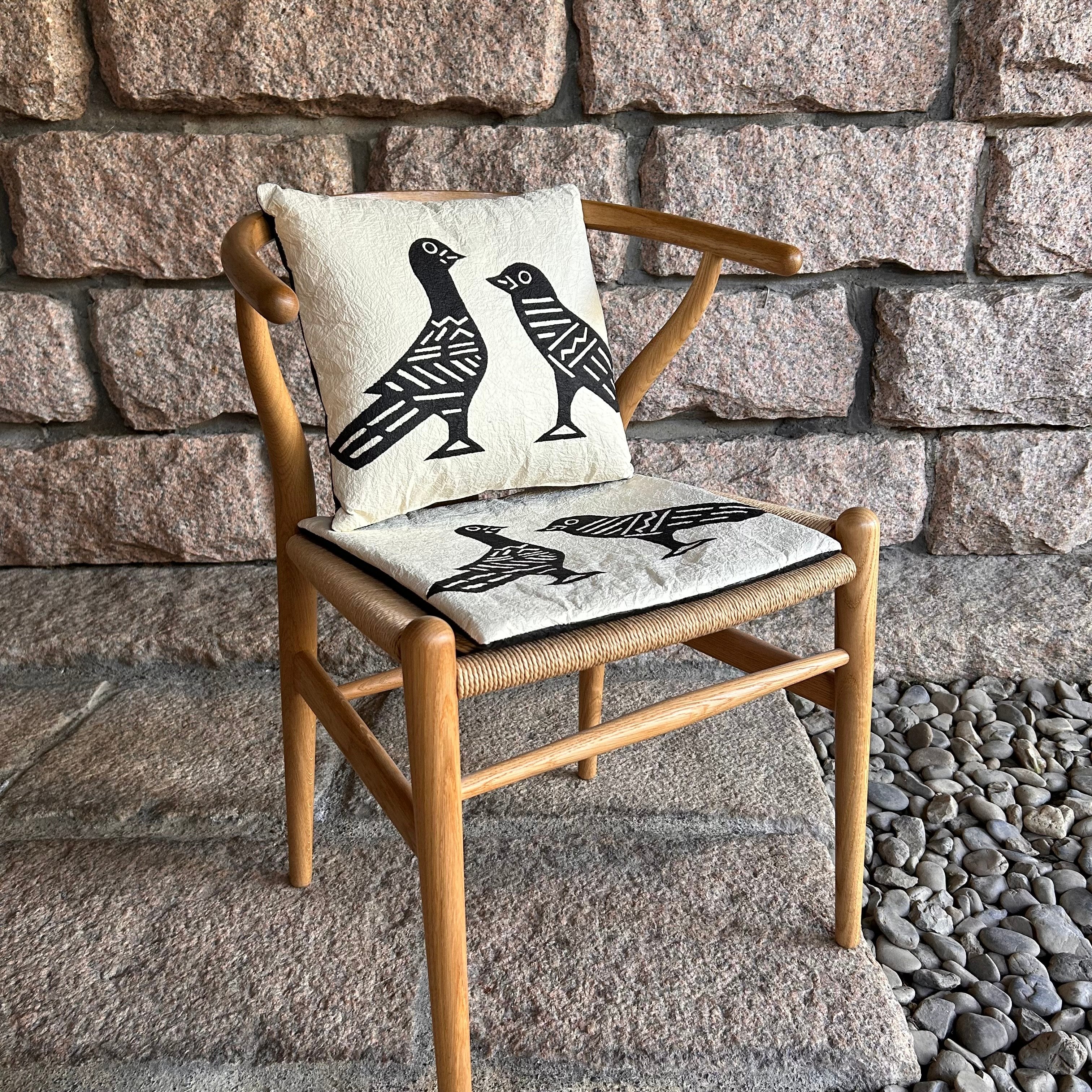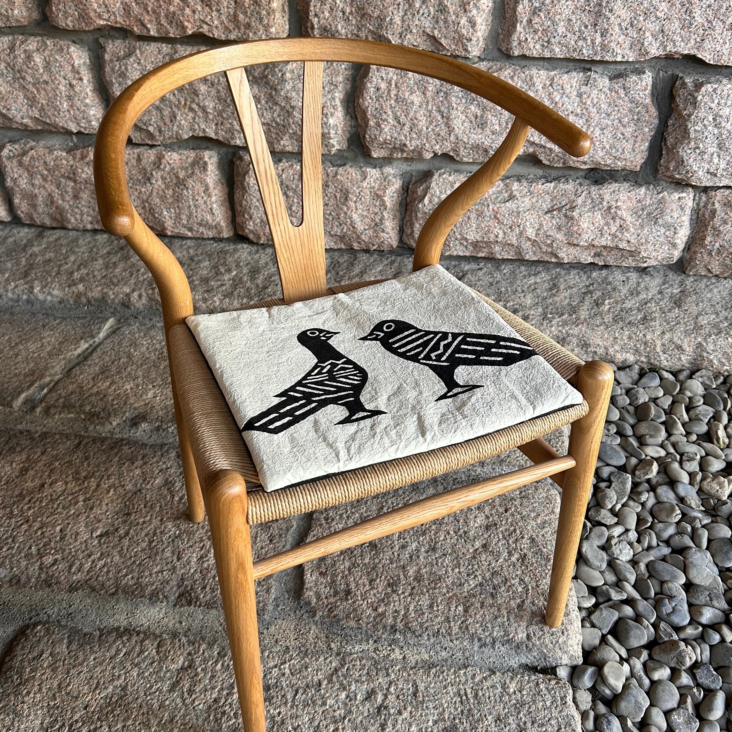 バード柄は表面に2羽の向かい合った鳥と、裏面にも模様を染めた両面型染タイプです。和室では座布団にしたり、椅子にい置いたり、インテリアとしてとても素敵な角座です。同デザインのクッションと合わせて使えば、魅力あふれる空間になります。