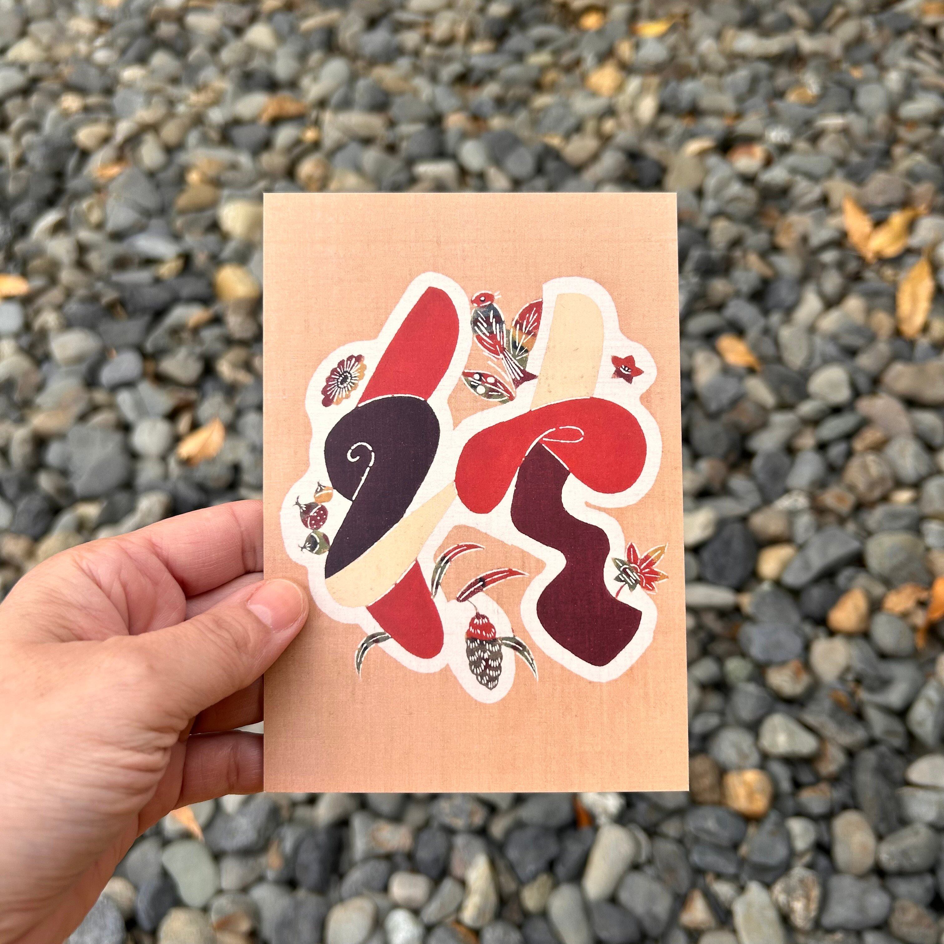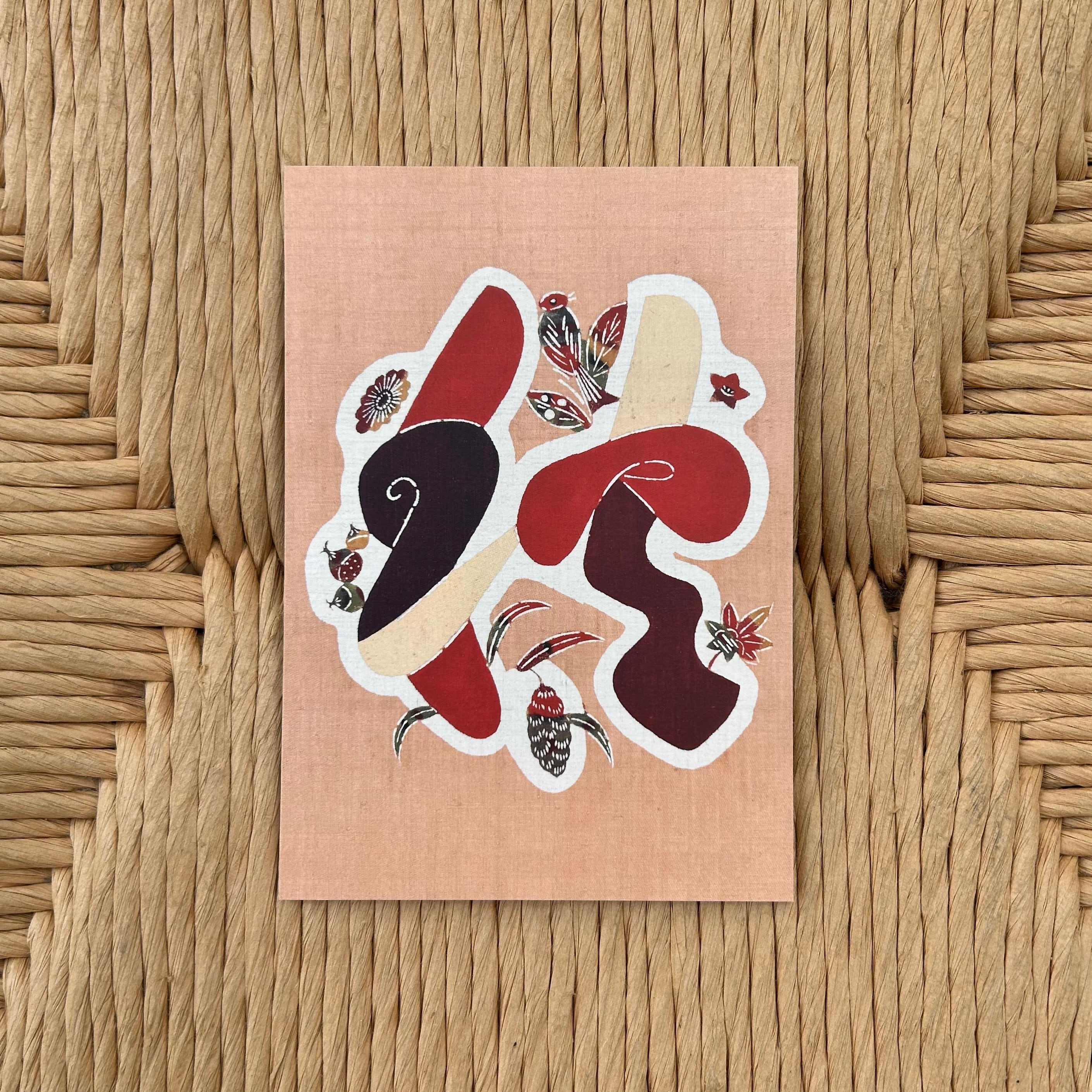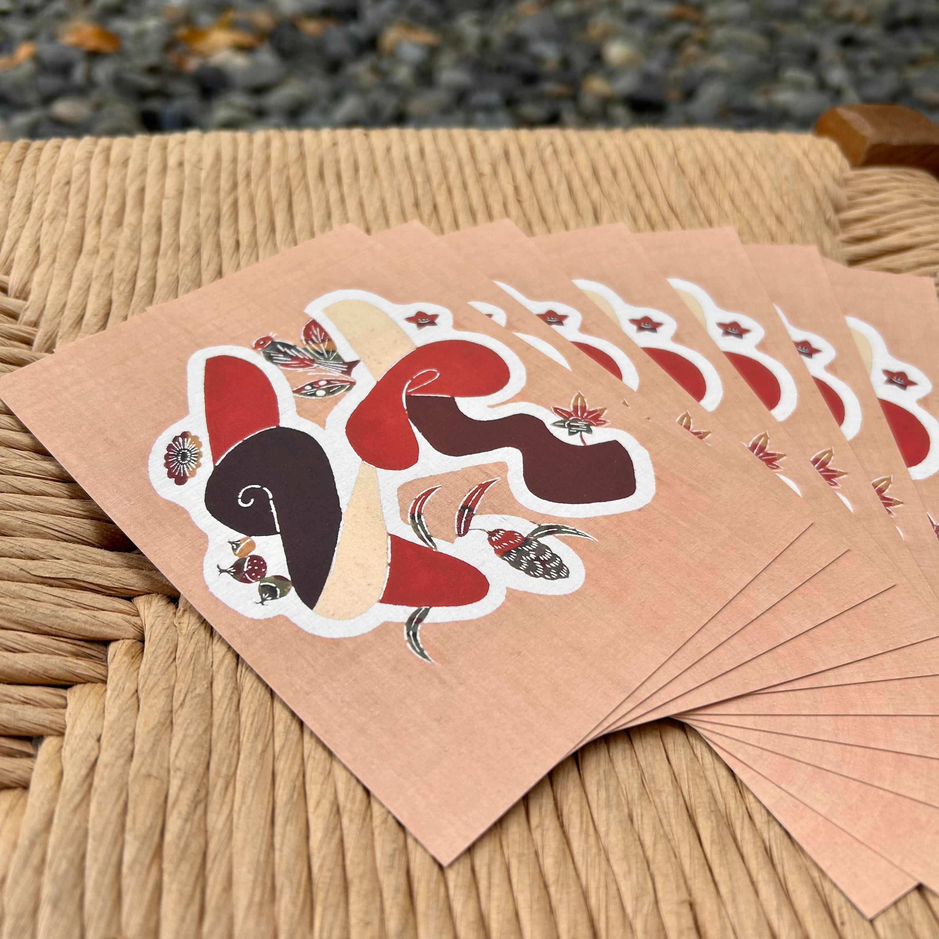 芹沢銈介美術館オリジナル絵はがきより、四季に合わせたおすすめ10枚セットをご用意しました。秋に実のる栗や紅葉したもみじ等の愛らしい文様がデザインされた秋の字文。ご挨拶状にぴったりな絵葉書です。