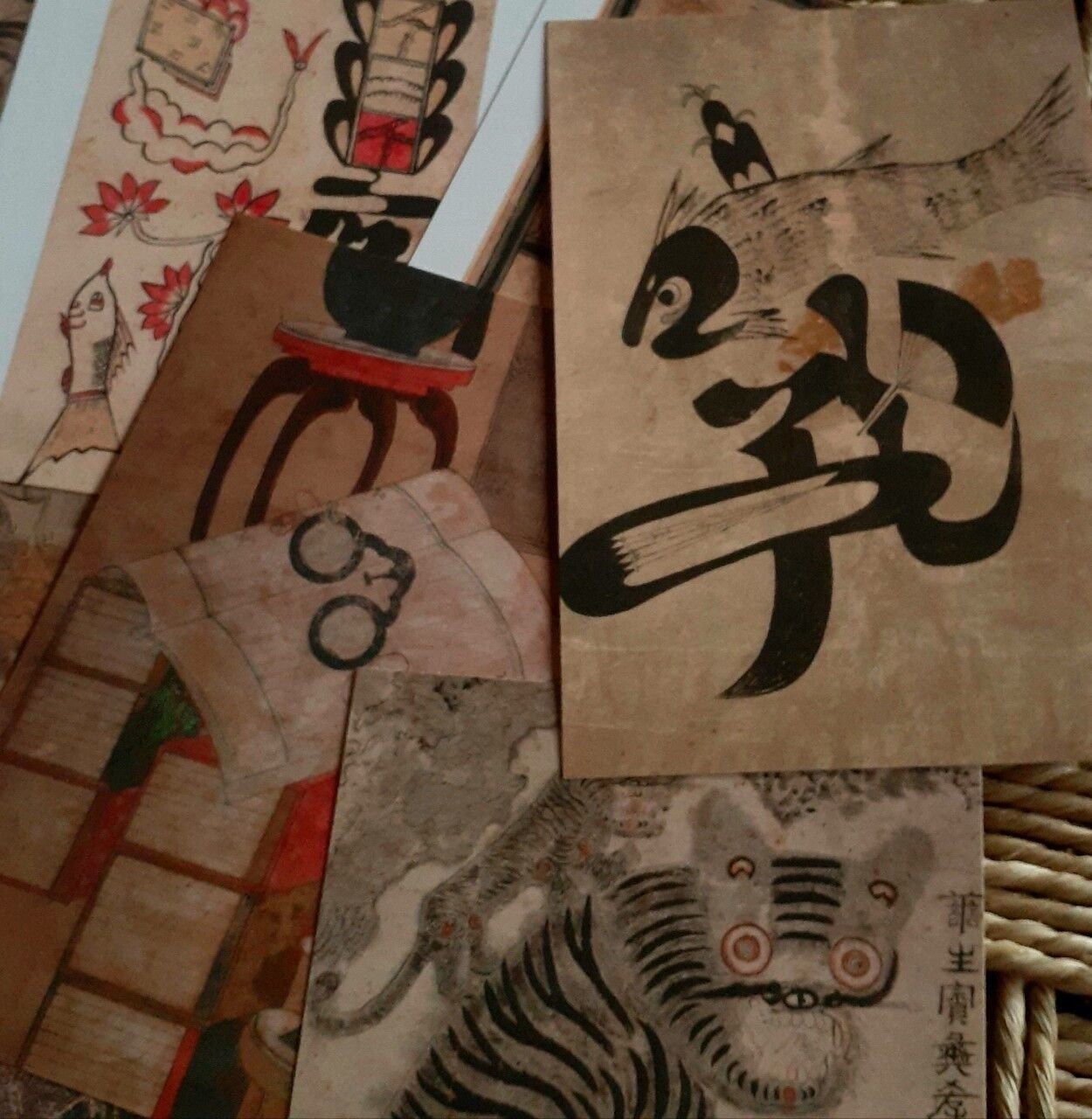 芹沢銈介の収集品の朝鮮民画より8点を選んで絵はがきにしました。[封筒入り]