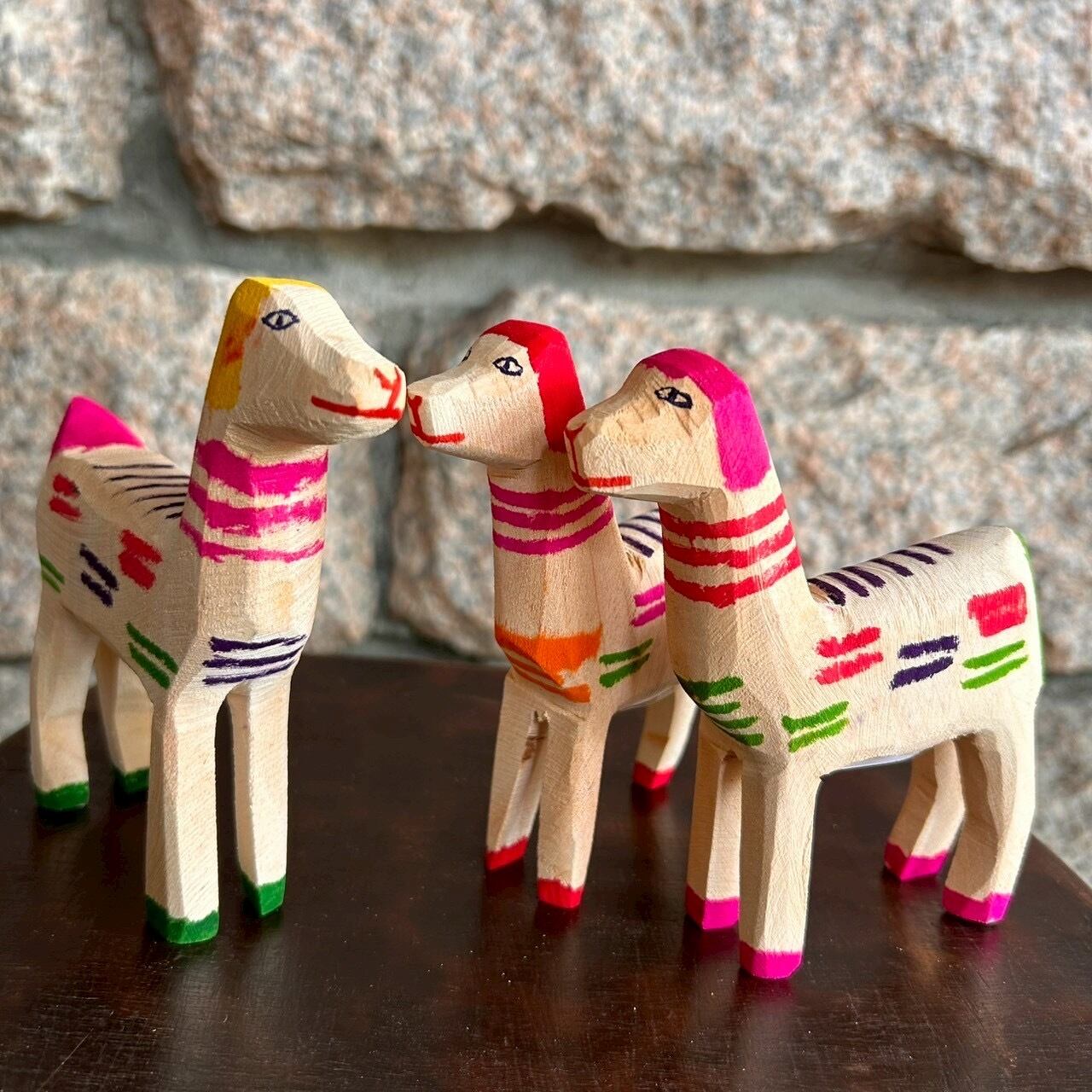 ペルーの首都リマから標高4,843mの峠を越えた先の町、ワンカイヨで作られている木彫玩具です。