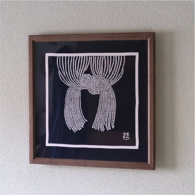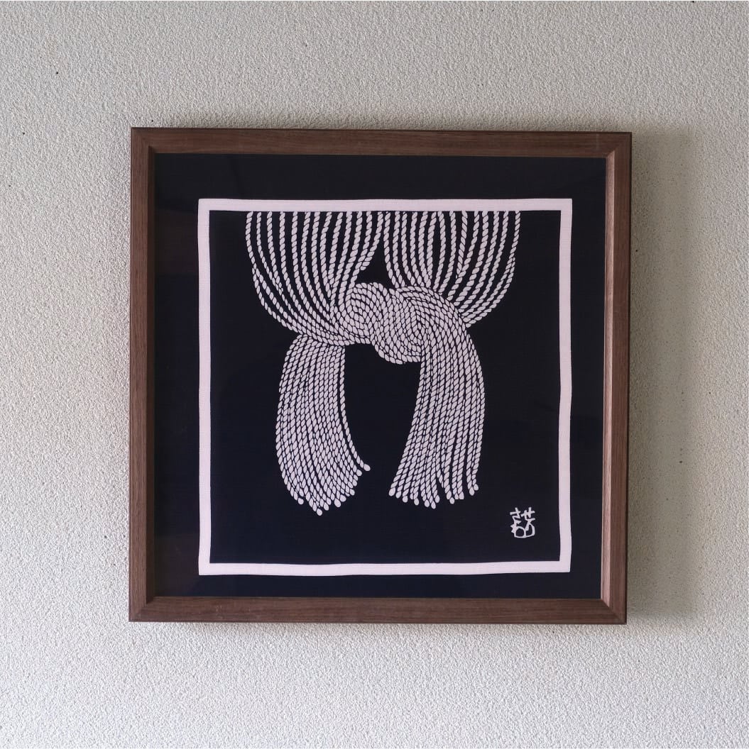 風呂敷43㎝幅縄のれん文をオリジナルの額に仕立てました。