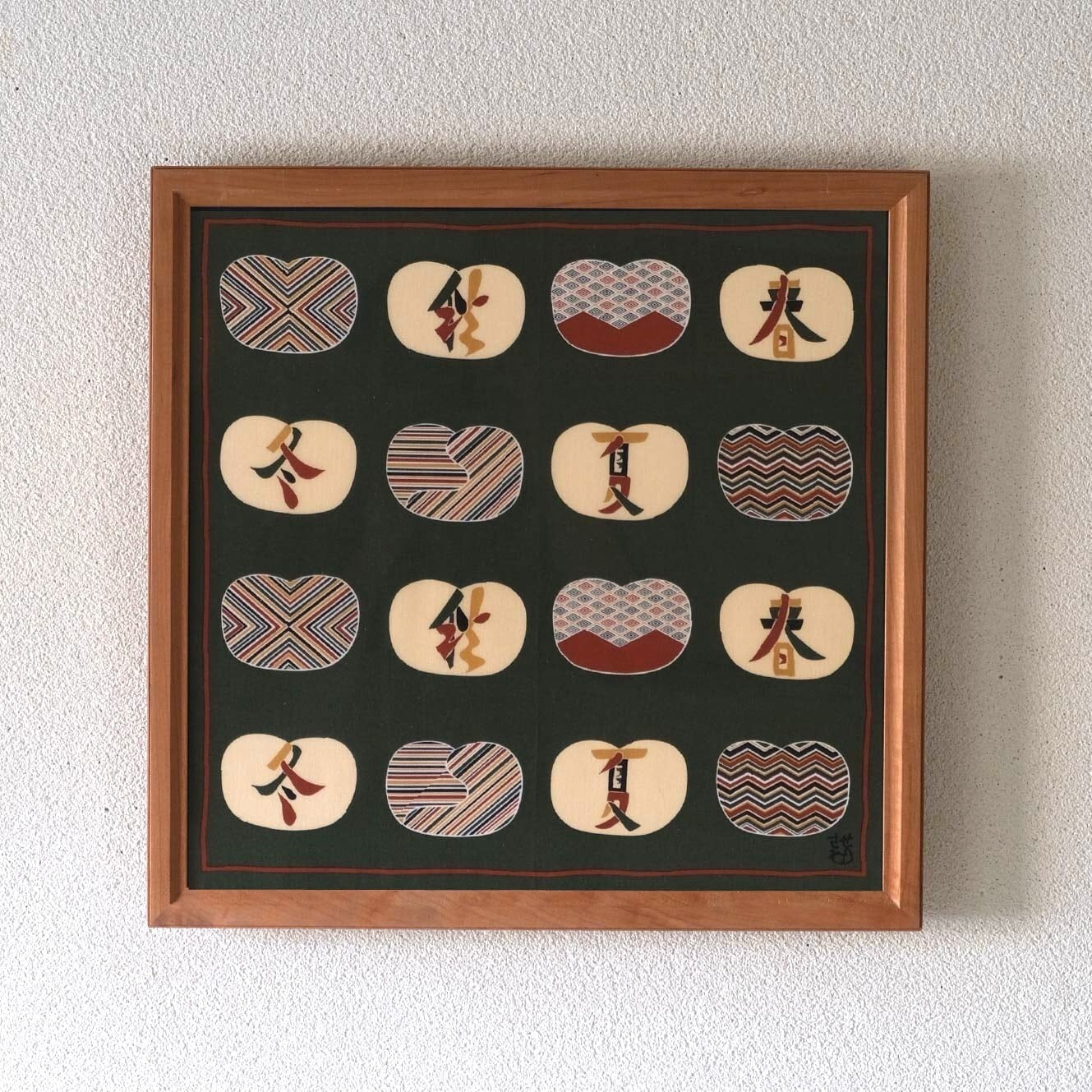 ハンカチーフ 洲浜型四季文をオリジナルの額に仕立てました。