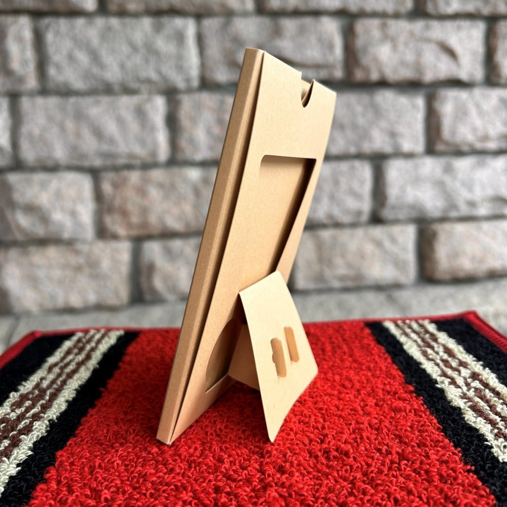 こちらの卓上型カレンダーは型染カレンダーの縮小印刷版です。専用の紙製ケースに入っていますので、すぐに組み立てて立てかけられます。