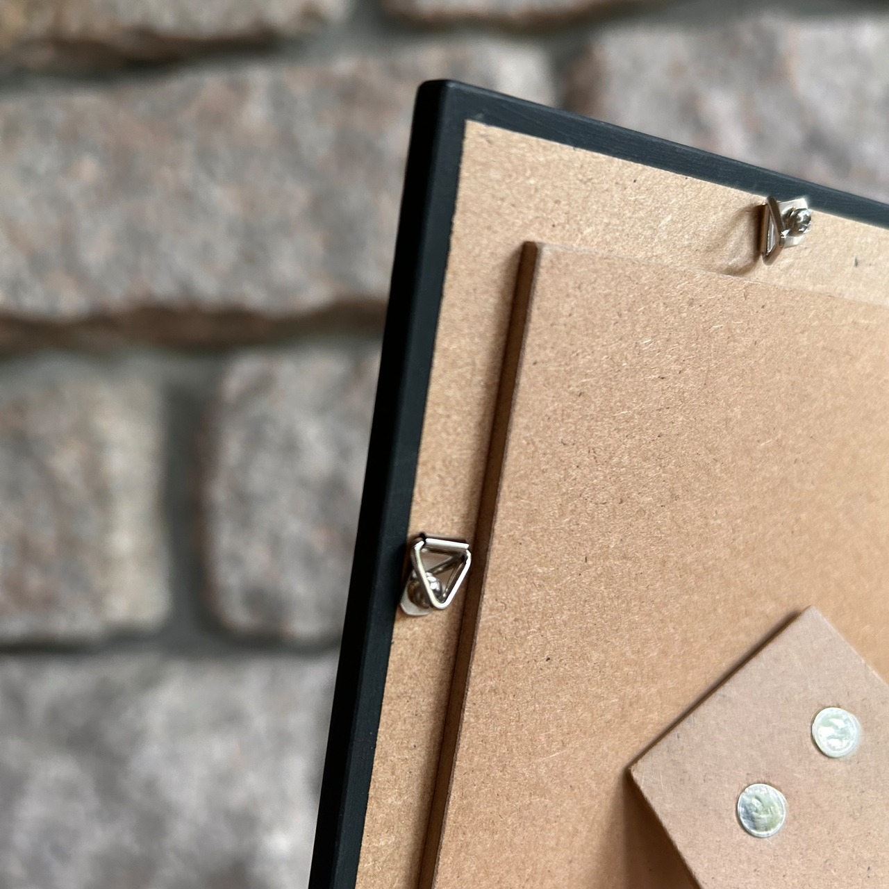 ※紐を通して壁に掛けられるよう、裏面に金具がついています。磁石・はがきは別売りです。