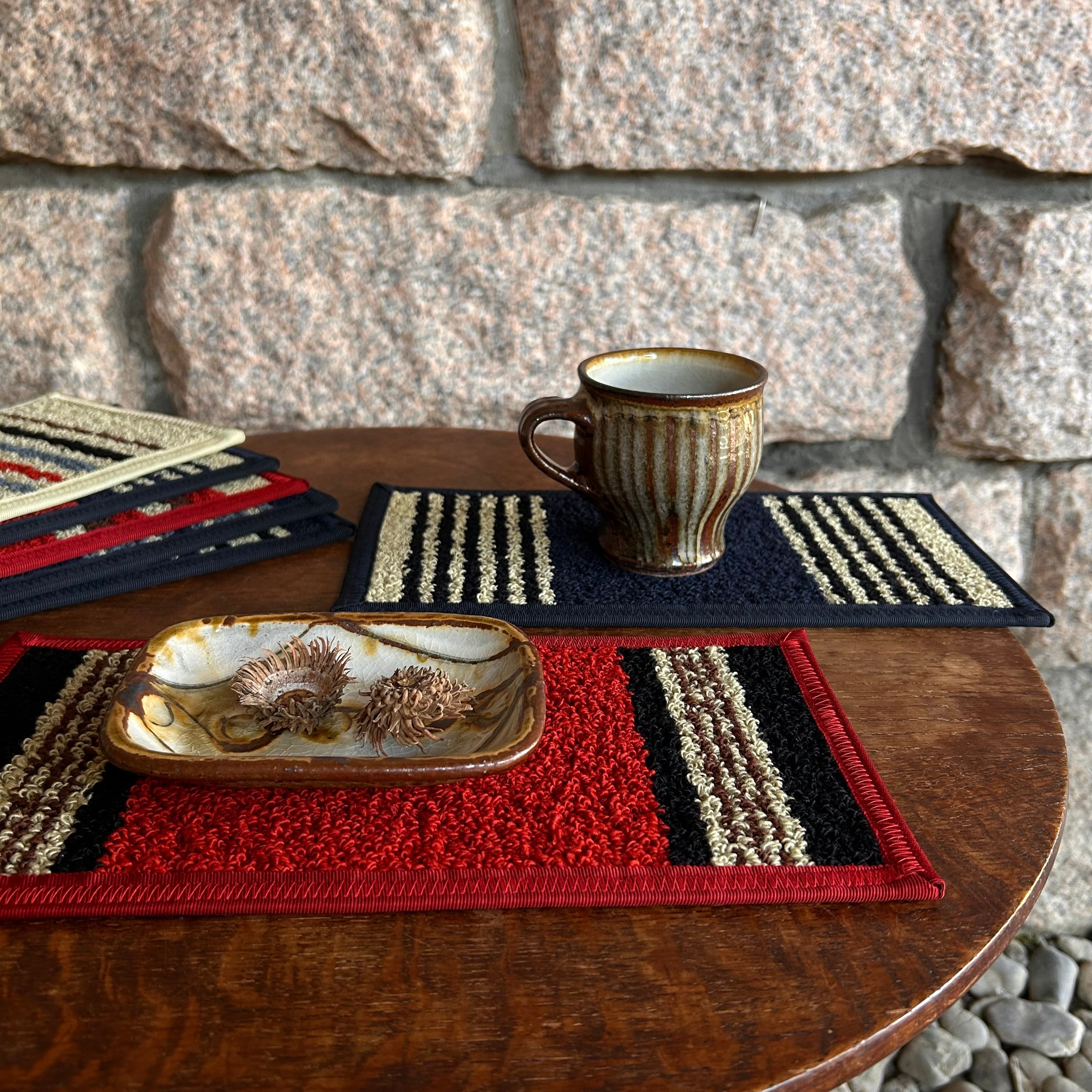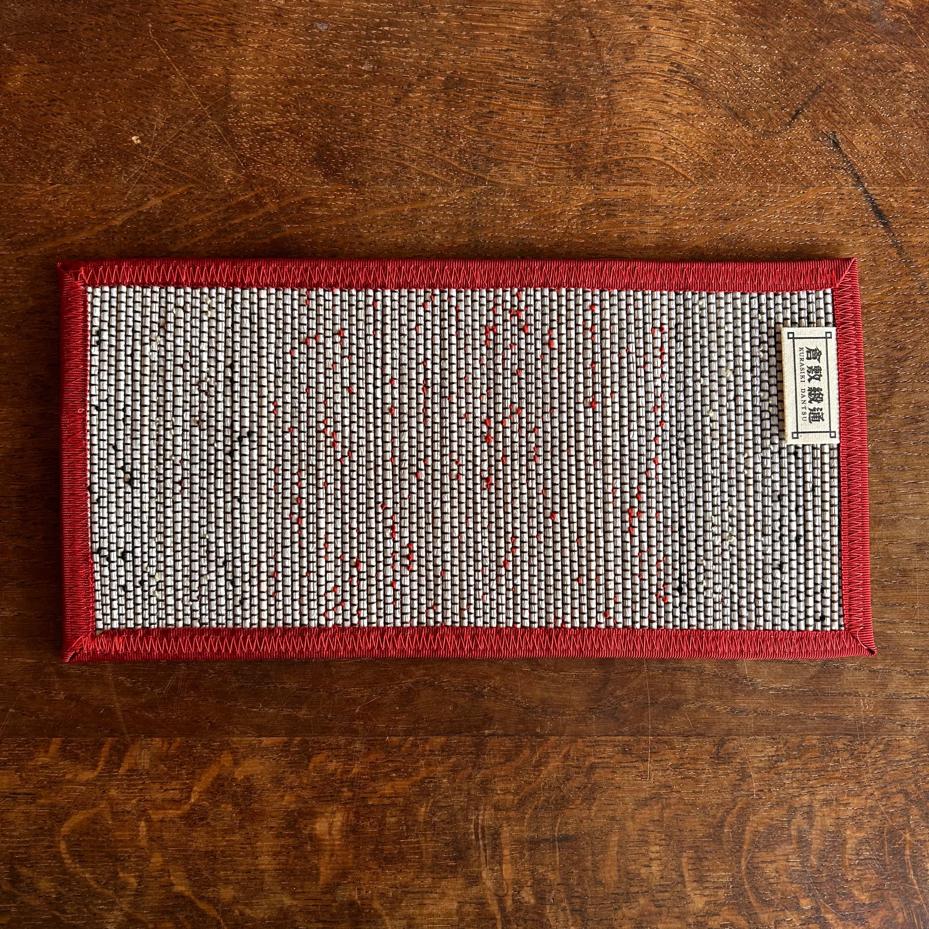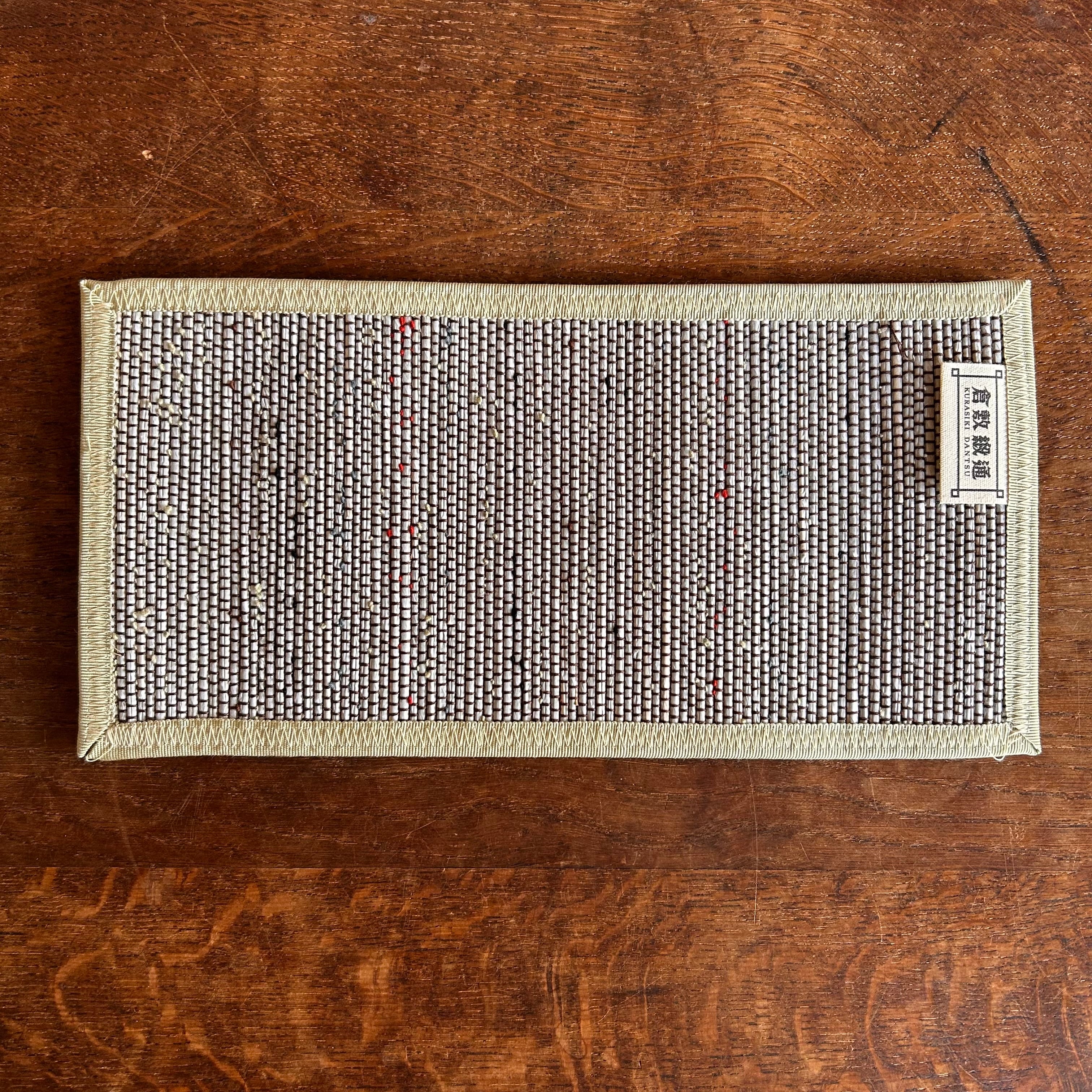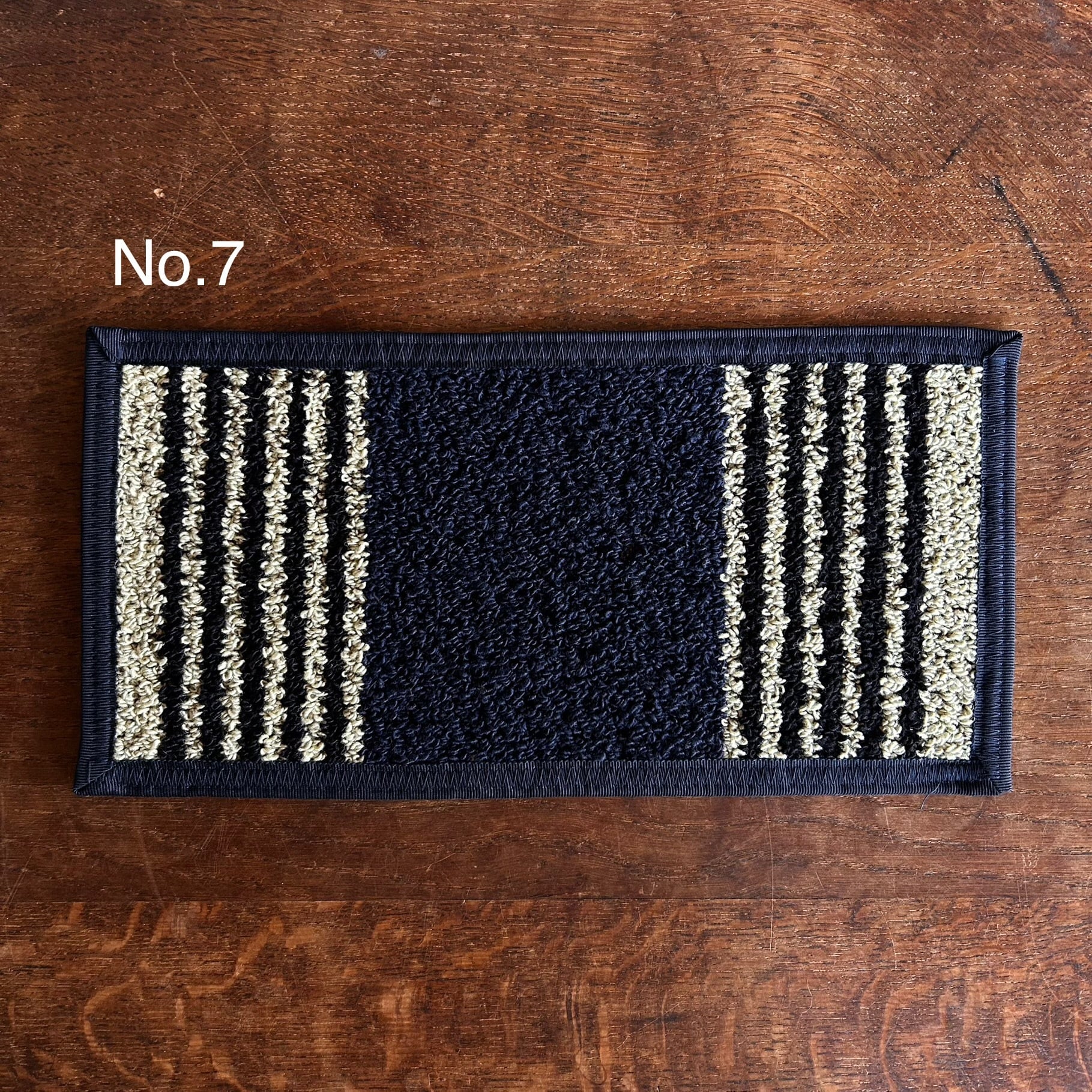 表面はレーヨンの混合糸でリング状に紡いだ糸が使われています。裏面は紙がまかれた井草で、通気性があってさらりとした手触りです。玄関やお部屋の棚に花瓶やカレンダーの敷物としてご利用になってはいかがでしょうか。